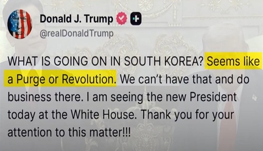 정상회담 앞두고 이례적 게시글 ‘한국 숙청 혁명 같은 일 사업못해’ 정상회담에서 질문받고 “정보들었으나 오해, 소문으로 생각” 도널드 트럼프 대통령이 이재명 대통령과의 첫 정상회담을 목전에 두고 SNS에 한국에서 숙청이나 혁명 같은 상황이 벌어지고 있다”고 언급해 갖가지 억측과 파문을 일으켰다 그러나 트럼프 대통령은 이대통령과의 정상회담에서는 공개적으로 오해가 있었던 것 같다, 그러한 소문 이 있었다고 인정해 일단 파문을 […]