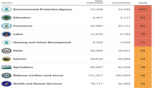 연방 셧다운 끝내 돌입, 연방공무원 40% 일시해고, 국립공원 등 부분 폐쇄