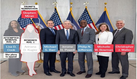 금리결정 전날 트럼프 해고 리자 쿡 이사 연방항소법원 제동으로 자리유지 트럼프 지명 스티븐 마이런 상원인준받아 회의 참석 3대 3 팽팽 기준금리 정책 결정에 돌입한 미국 중앙은행 연방준비제도를 이끄는 이사진 7명 중에서 친트럼프 이사 들이 3명으로 늘어나며 반트럼프 성향의 4명과 팽팽해져 불편한 동거가 시작되고 있다 금리결정에서 항상 투표권을 행사는 7명의 이사진 가운데 트럼프 대통령이 해고한 리자 […]